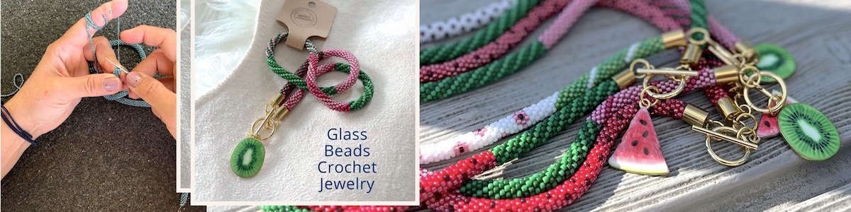 Handmade Beaded Crochet Necklace – Kiwi Summer Jewelry, Glass Beads