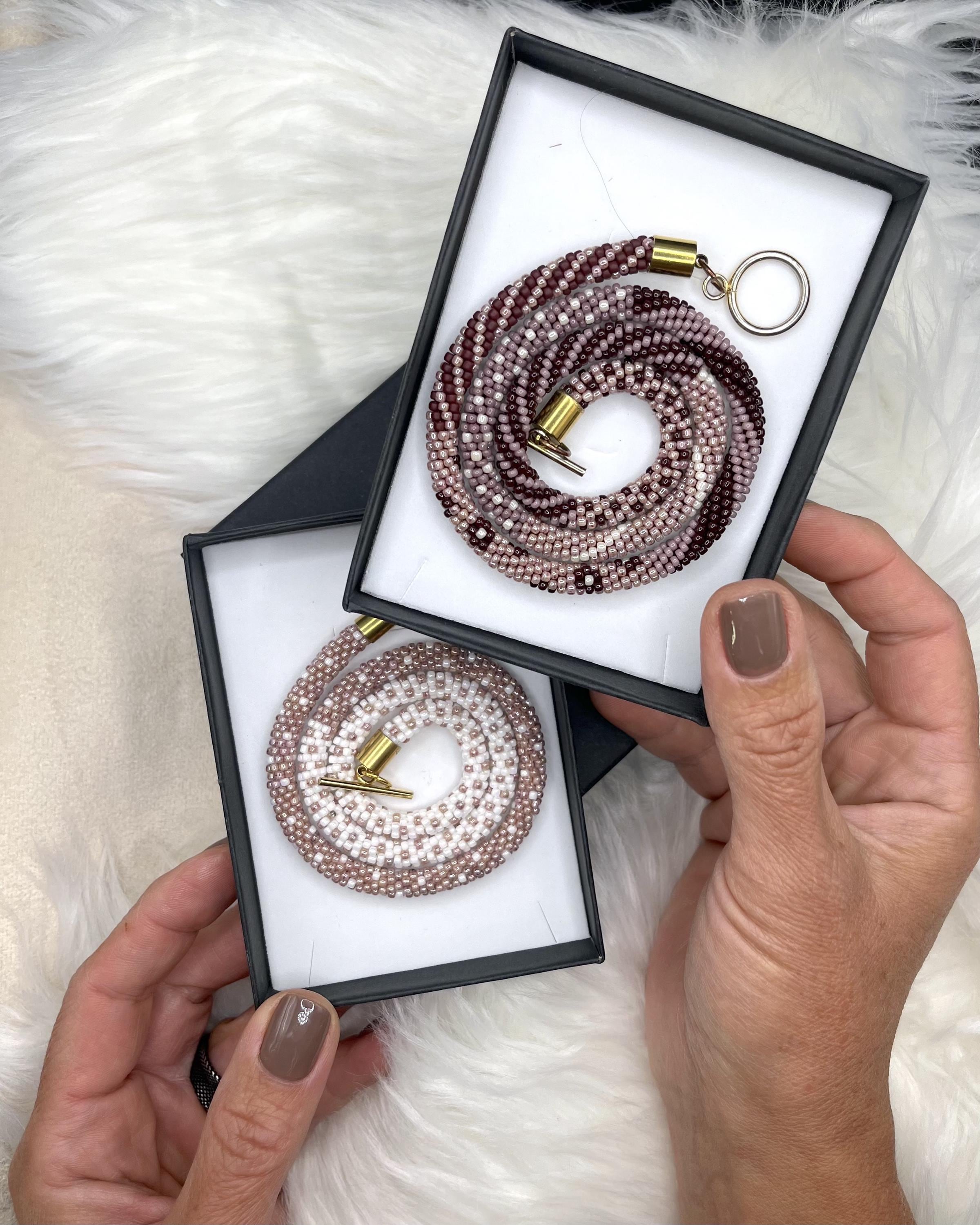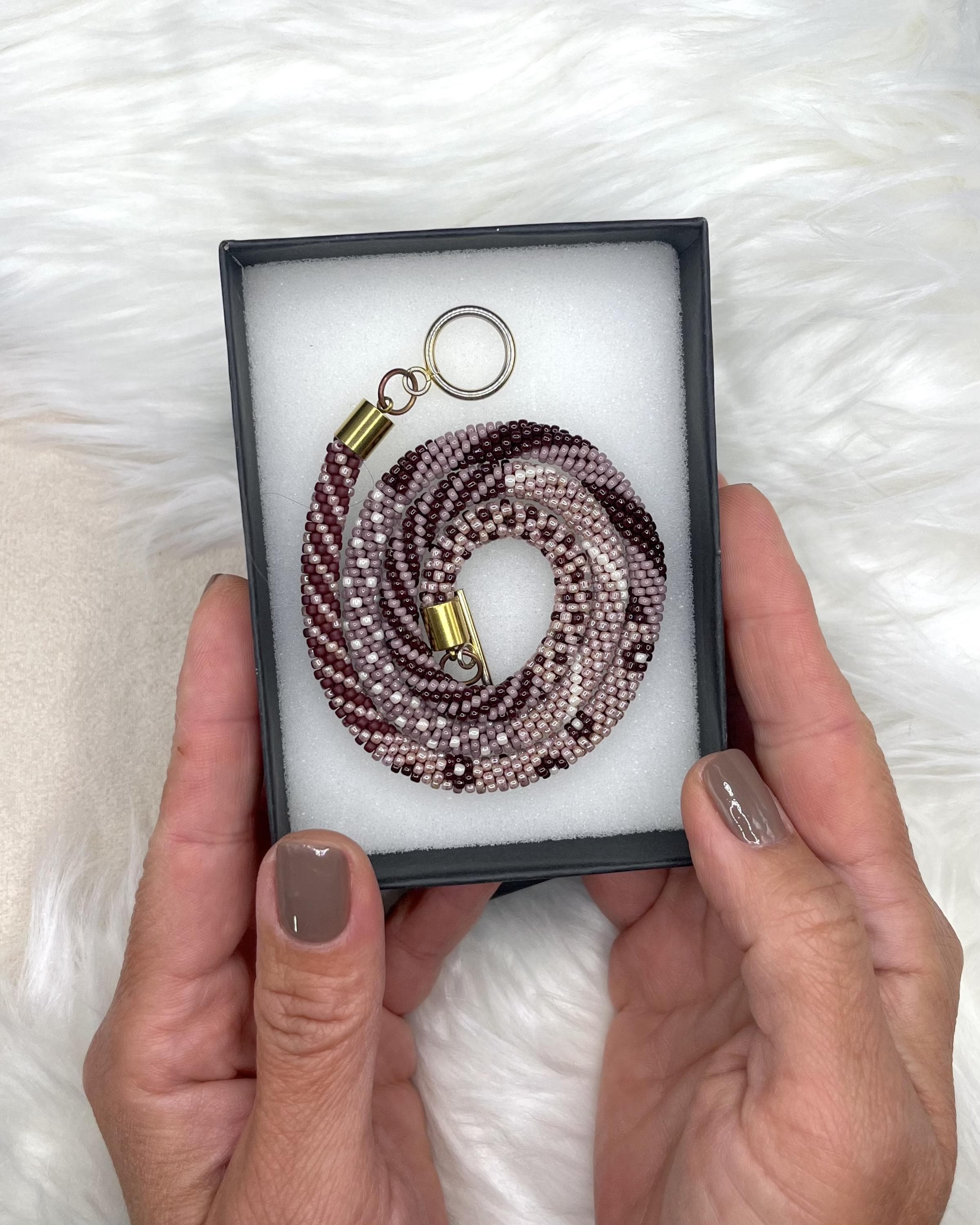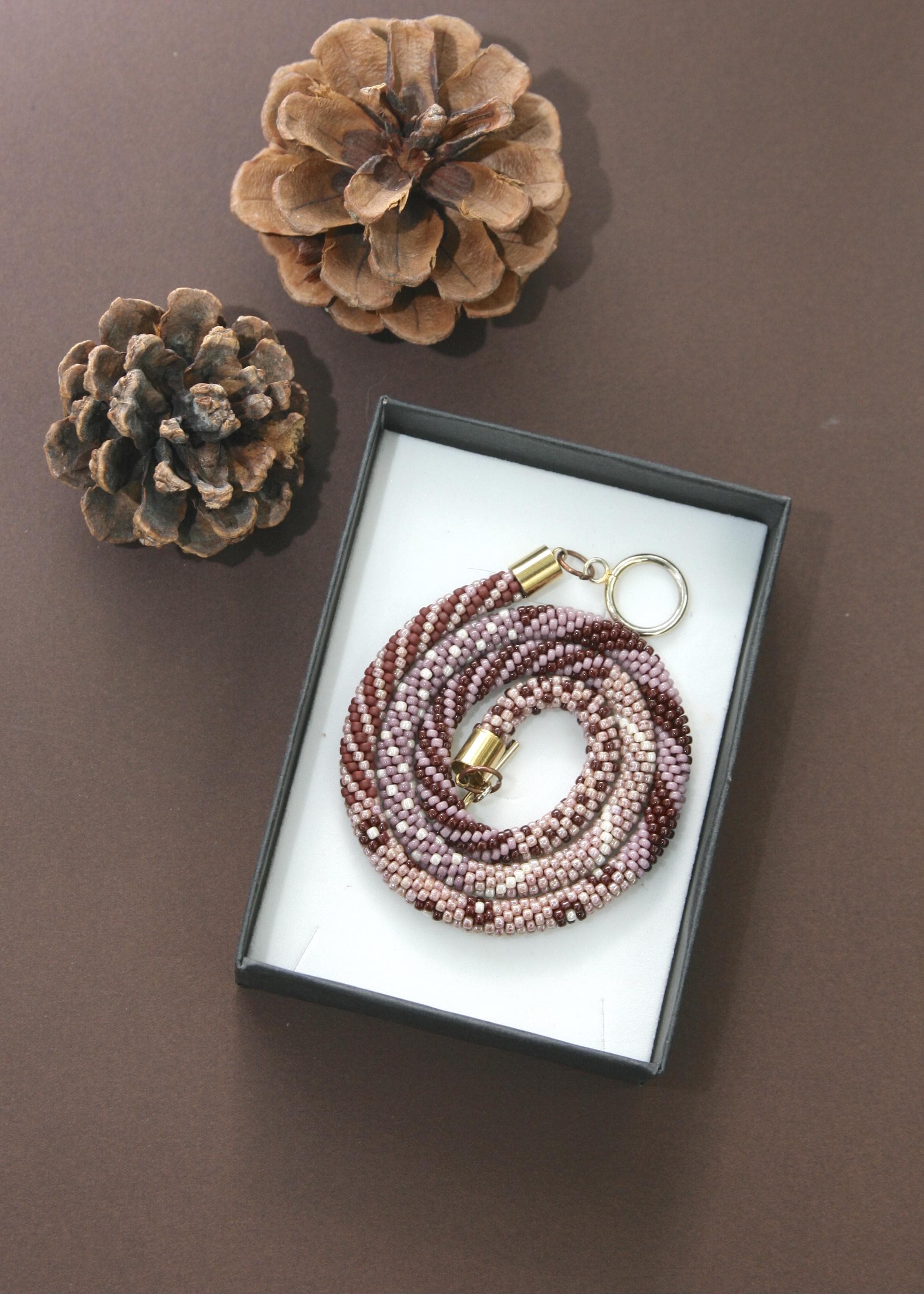 Bring a splash of summer to your style with this vibrant, handmade beaded necklace inspired by cozy colors. Carefully crocheted by hand using approximately 1,600 tiny (2mm) glass seed beads in rich beige and brown hues, this unique piece is a celebration of warm, sunny days and carefree cozy vibes.