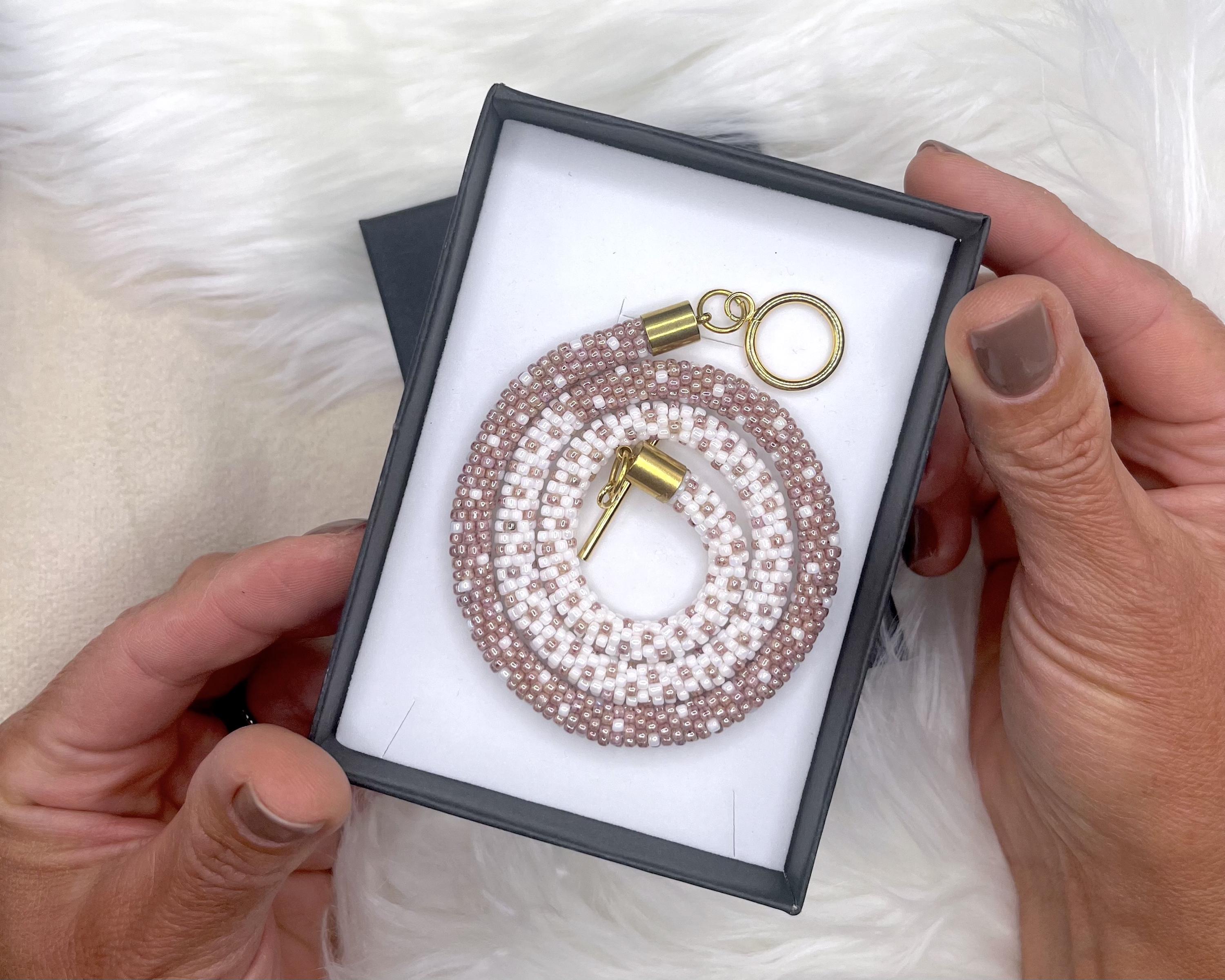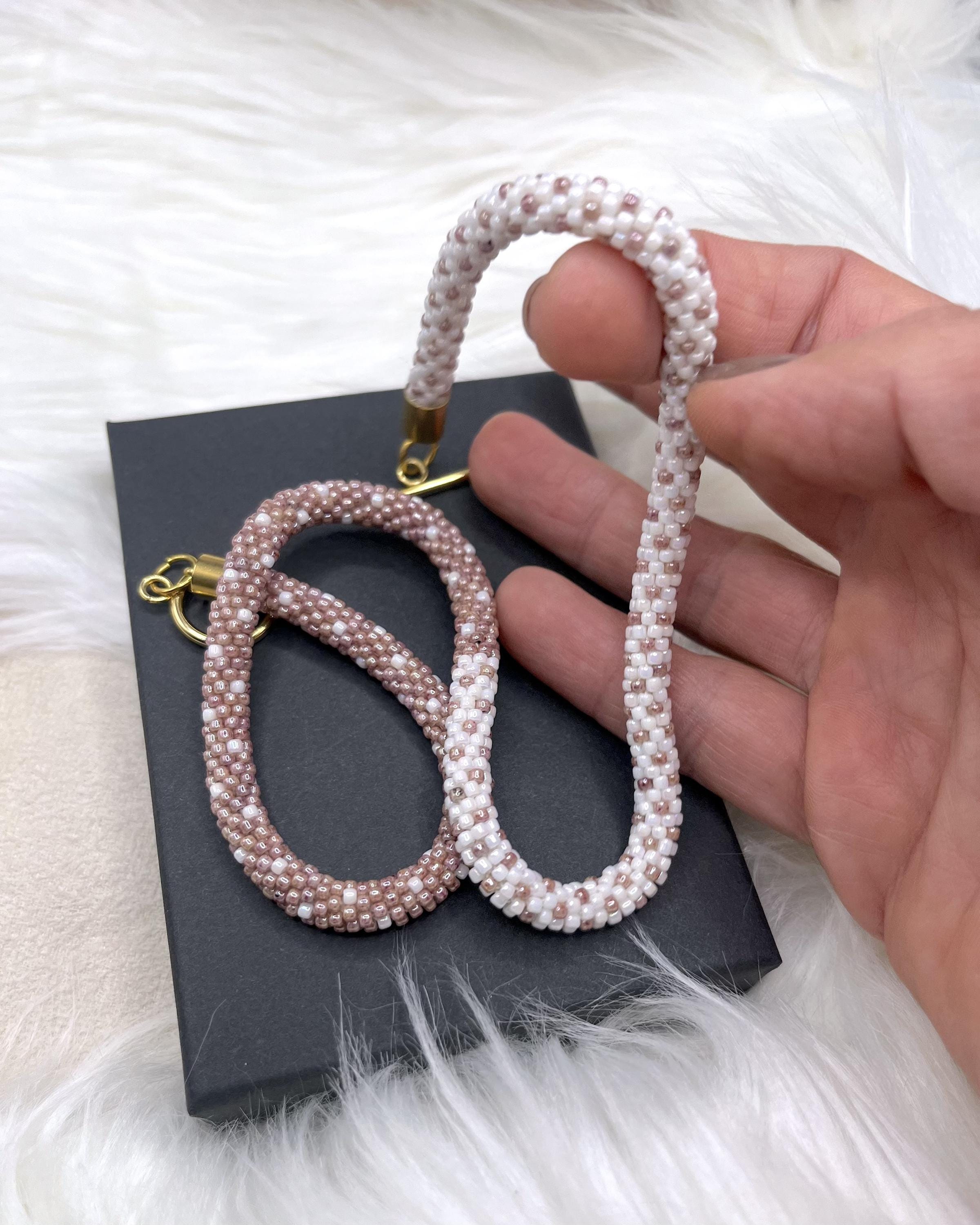 Bring a splash of summer to your style with this vibrant, handmade beaded necklace inspired by cozy colors. Carefully crocheted by hand using approximately 1,600 tiny (2mm) glass seed beads in rich beige and ecruhues, this unique piece is a celebration of warm, sunny days and carefree cozy vibes.