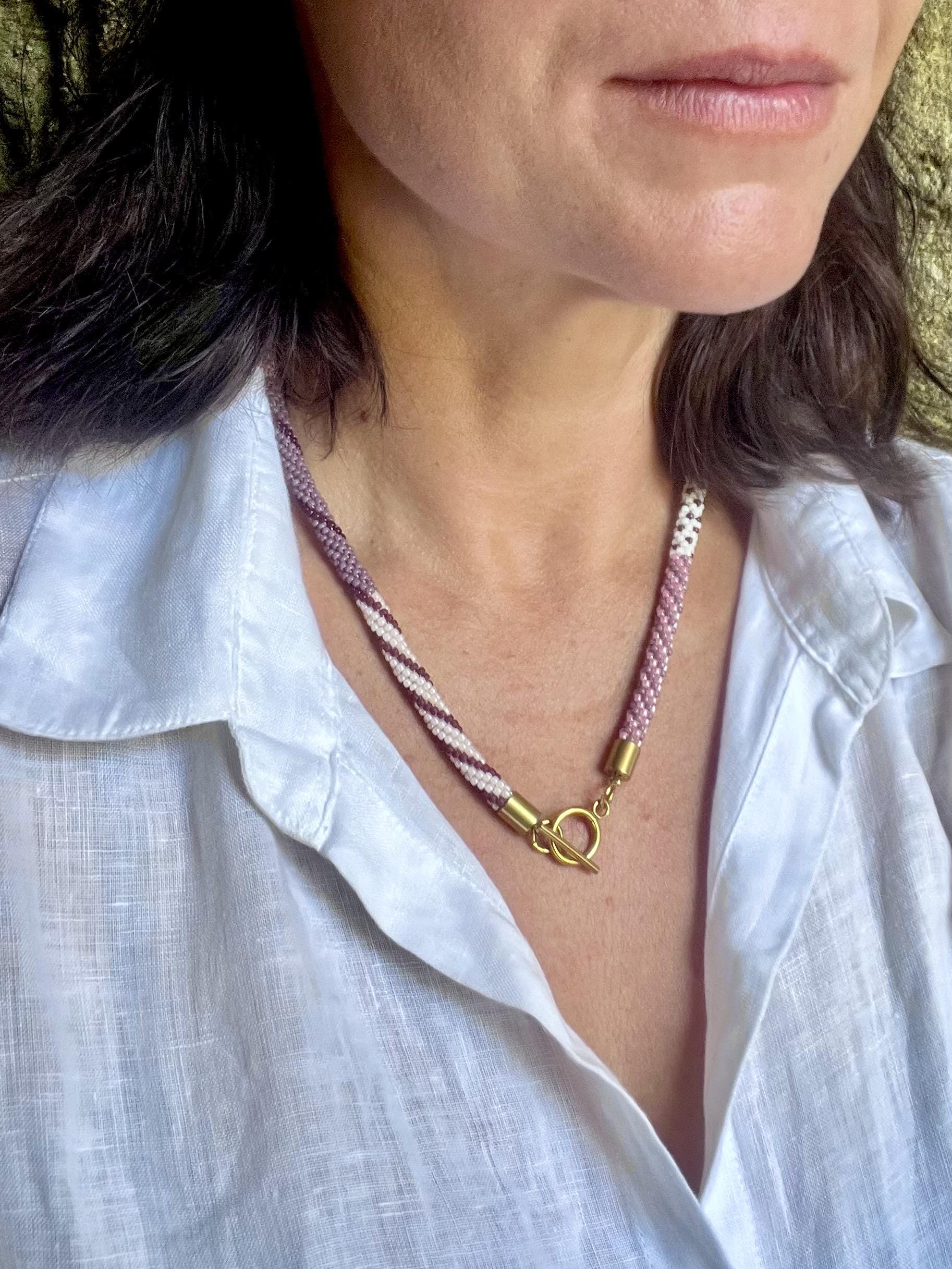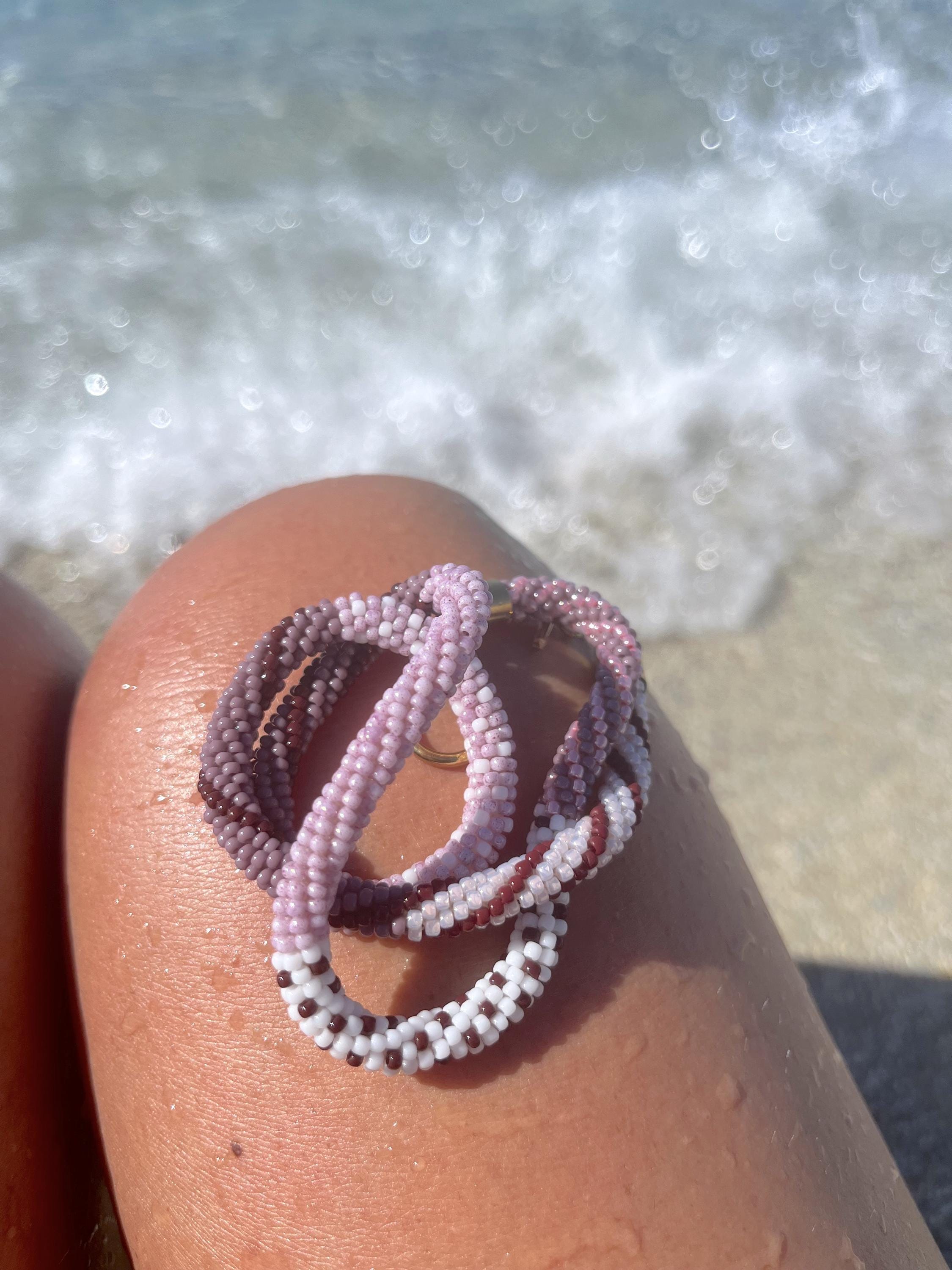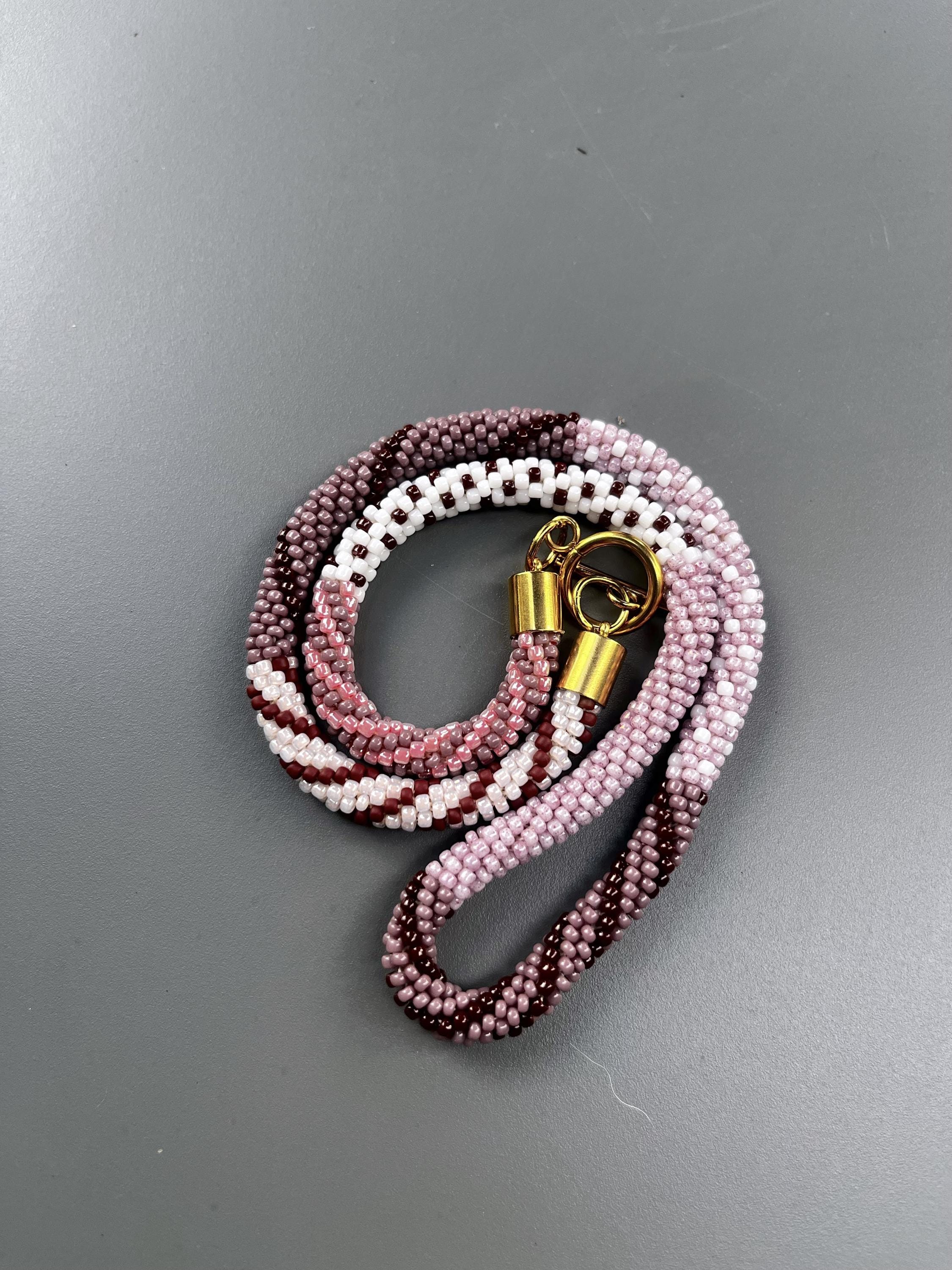 Bring a splash of summer to your style with this vibrant, handmade beaded necklace inspired by juicy colors. Carefully crocheted by hand using approximately 1,600 tiny (2mm) glass seed beads in rich pink and brown hues, this unique piece is a celebration of warm, sunny days and carefree summer vibes.